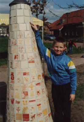 De afbeeldingen van namen, tekeningen, foto's en dergelijke zijn op de 400 tegels geprint en op het twee meter hoge kunstwerk gemaakt. Wethouder K. Bethlehem stelde bij de officiële openingshandeling de pomp in werking. Nabij de kunstwerkpomp is een bankje geplaatst. En als de bestrating rond dit fraai stuk kunst gemaakt is, dan is Mierlo-Hout weer een mooi stuk kunst rijker.