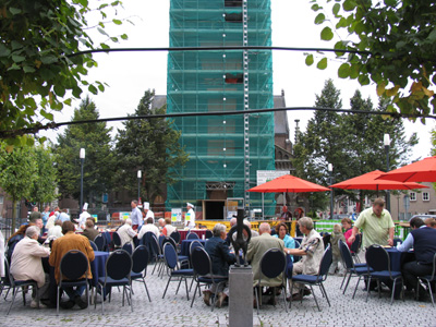 Maar ook het podium met terras werd goed bezocht Vanaf het plein was tot diep in