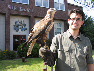 Hoofdstraat en zet je in de tuin van de Odulfusschool een roofvogelattractie op
