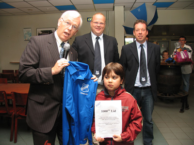 En het is de zeven jarige K.J.M.M. (Kevin) van de Laar uit de Dolomieten 53 geboren op 26 juli 1998 die officieel bij RKSV Mierlo-Hout de boeken in gaat als het 1000e lid. Hiermee schaart RKSV zich onder de top van de grotere clubs in haar regio. Hij kreeg als beloning zijn eerste blauwwitte voetbaltenue cadeau en ook de contributie werd hem geschonken. Proficiat RKSV Mierlo-Hout.