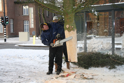 Stoer mannenwerk in de bittere vrieskou.