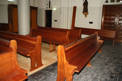 het middenschip zijn namelijk vervangen door mooie, nagenoeg nieuwe banken welke