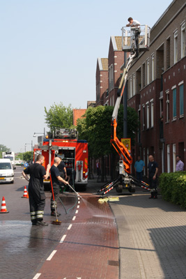 hoogwerker waarvan een slang gesprongen was. En dit juist op het moment dat een