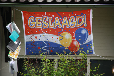 uitgehangen. Maar dan vlaggen met een wat andere tekst of wimpel en boekentas.