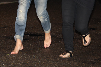 een uur na middernacht als de eerste flinke regenbui de wandelaars parten